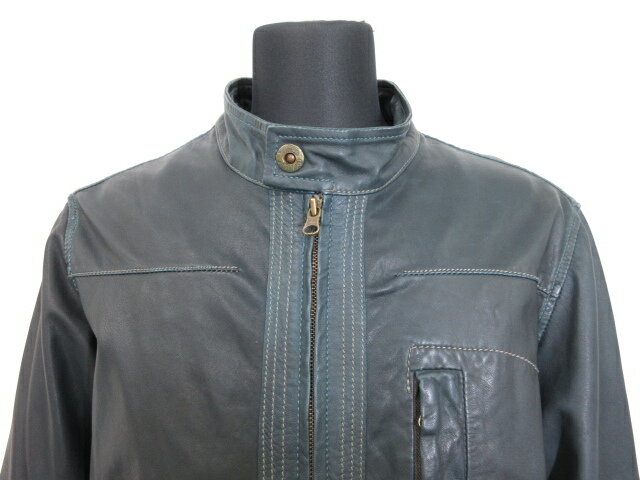 美品 【SAGA IBANNEZ サガイバニェス】 本革 ラムレザージャケット シングルライダース (メンズ) size52 ネイビー系 □7MB1828□【中古】